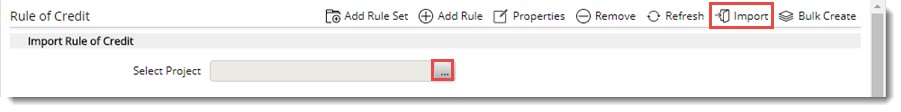 Import of rule of credit helps in reusing of rules of credit data from similar projects. The project from which the rules of credit values are imported is defined as the Source project. The project to which the values are imported is defined as the Destination project. Rule of Credit can be imported from a Project or an MS Excel sheet.