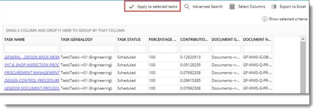 - Specify Tasks: On selecting the radio button next to this option, a browse button is displayed,. On clicking the browse button Advanced Search window is displayed. Search and select the tasks. In the Search Results window tool bar click Apply to selected tasks.