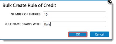 The selected properties will be available in the Rule of Credit window. Select values for the selected properties.