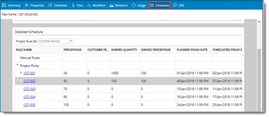 If the document you selected is linked to a task, then on clicking this button the schedules of the linked task is displayed.