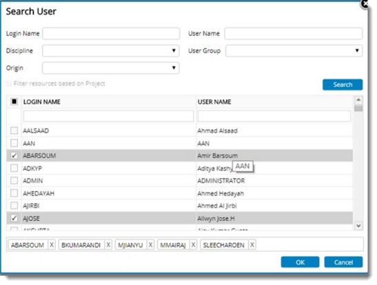Figure: Searching and selecting users