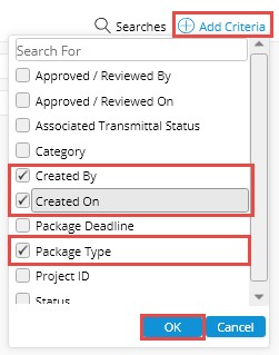NOTE: For criteria already available in the search window, the check box next to it is selected by default.