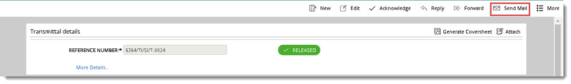 Mail window is displayed with the details of the released transmittal. The documents sent through the transmittal would be added to the mail as attachments.