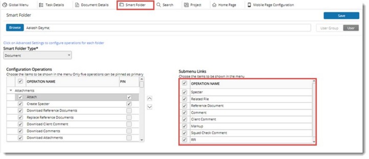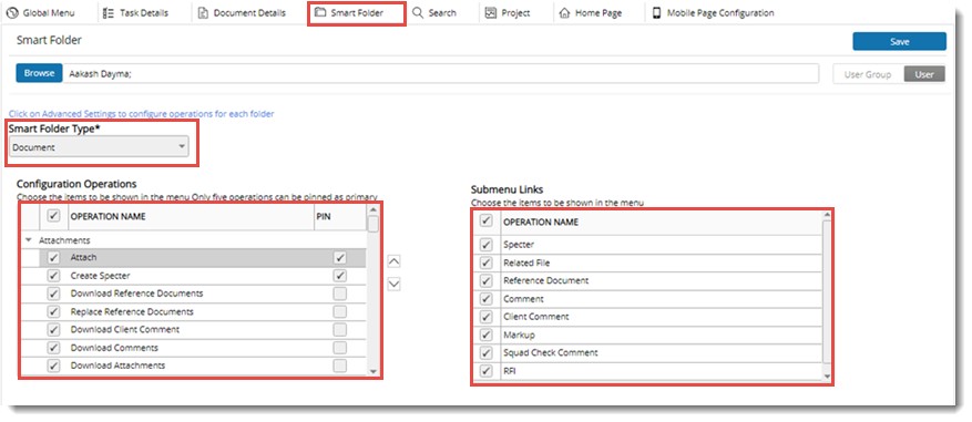 NOTE: You have to select a User or User Group before configuring different smart folder options. For more information on selecting User and User Group refer Searching and Selecting Users and User Groups.