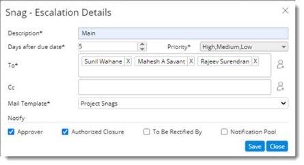Figure: Snag- Escalation Details window