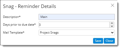 Figure: Snag - Reminder Details window