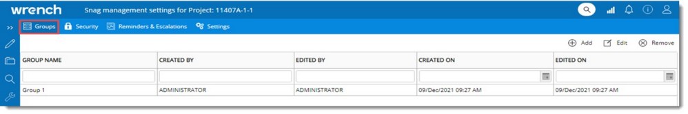 Groups helps to define a list of common types of Snags for which default set of characteristics values can be predefined. This will help to create Snags easily instead of specifying values for each Snags properties individually. A group can be assigned to a Snags and the property values as defined for the group will be inherited by the Snags