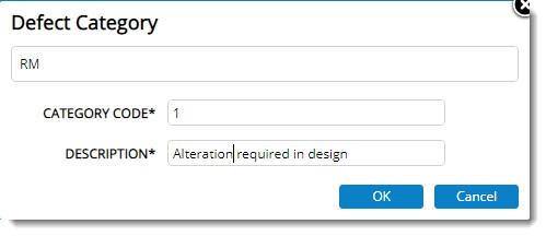 Defect categories created can be modified.