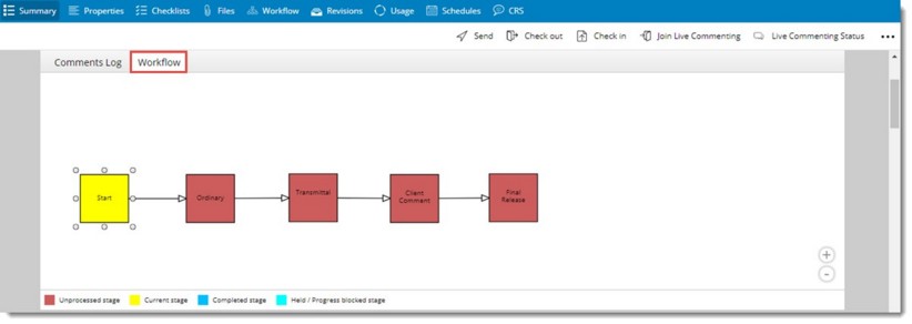 An option to view the workflow assigned to the document and log of Workflow operations is also available here. On clicking the Workflow tab, workflow assigned to the document is displayed.