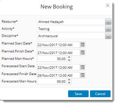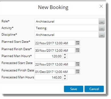 Booking can be made against a Role or Resource. This again depends on the selection made against Time Booking Mode.
