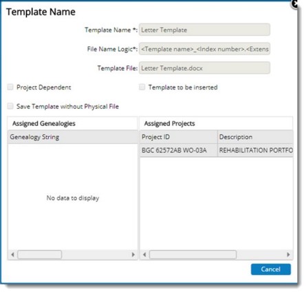 NOTE: You can only view the template properties here. Editing of the properties is permitted only from the Template Masters.
