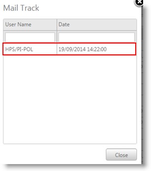 On clicking the icon, Mail Track window is displayed with the name of the user and date and time when the mail was opened.