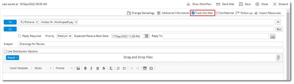 NOTE: Email delivery notifications is also be available for external correspondences . The read receipt mail is delivered to sender’s email ID when viewed by external users