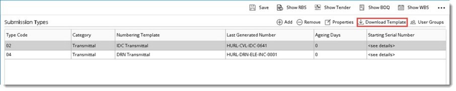 NOTE: Click the option Download Template if you want to view the template assigned to the transmittal type.