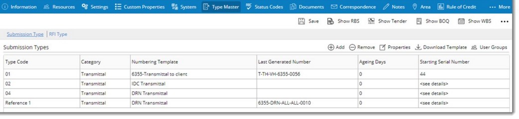 All the details related to submission type are displayed here. It is possible to edit the properties here.