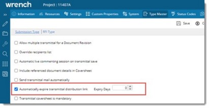 If the checkbox next to this option is selected, and the user does not respond within Expected receipt date or Expected receive back date, the link expires automatically. In case, expected receipt date or expected receive back date is not specified, the transmittal distribution link will expire 24 hours after the release of the transmittal. An option to provide expiry date is available next to this setting.