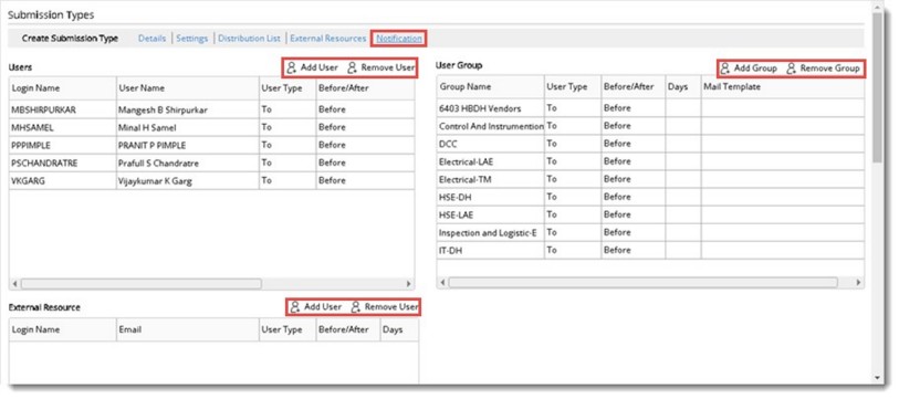 Similarly it is possible to configure notifications for User Groups and External Resources.