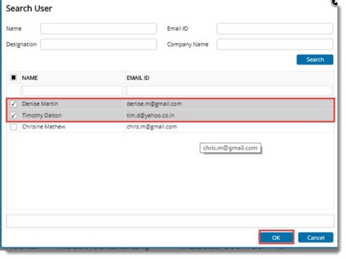 User Type: By default, the 'user type' configured in the distribution list is displayed here. You can select a user type from the drop-down list. Values available are To, Bcc and Cc.