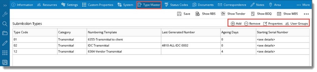 In normal cases drawings and documents are submitted through a transmittal, submittal or package. When documents of similar characteristics are submitted using these submission methods, a submission type can be created with these common characteristics and this can be assigned to the documents that are submitted. When a type is assigned to the submission method, the documents that are submitted inherit these properties.