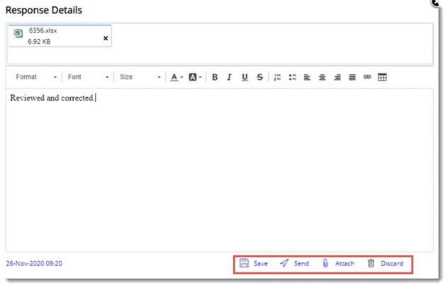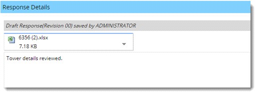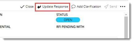- Click Save to store the updated response. Saved response will be displayed in the Response Details section in the RFI Details window.
