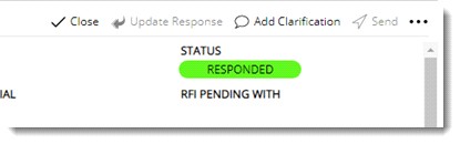 Status of the RFI changes to RESPONDED. Response when sent will be added as a Conversation.