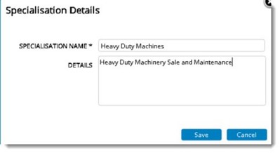 Specialisations are the lists of products or services as offered by vendors. This tab is selected by default.