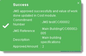 The JMS will be grouped based on STATUS and JMS NUMBER by default. Under Each JMS the BOQ items will be displayed as a flat list (BOQ hierarchy structure will not be maintained for displaying items under a JMS). The submitted amount and approved amount will be automatically cumulated to the ‘JMS Number’ Level and to the ‘JMS status’ level.