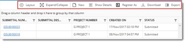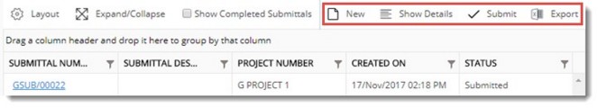 Show completed submittals: On selecting the check box next to this option only completed submittals are displayed.
