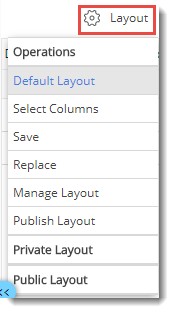 - Save: Click this option to save the layout. The layout can be saved as Private or Public layout.