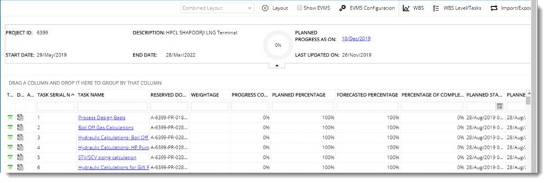 For some organizations, it is not required to view the progress bar in the WBS grid. Hence a facility to hide/unhide progress bar is provided.