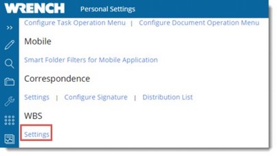 1. In the Personal Settings under the group WBS click Settings.