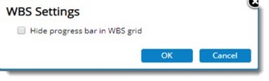 1. In the window select the checkbox next to Hide progress bar in WBS grid.