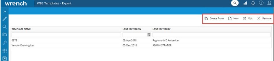 A custom WBS template can be created using this option. There are two types of template such as Export templates and Import templates. Export templates are used for exporting WBS data to MS Excel files and Import templates are used for importing tasks into WBS.