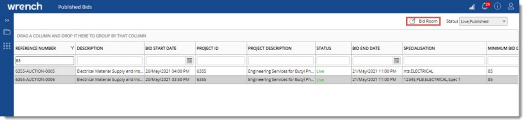 NOTE: Vendors may also access the bid room directly by clicking on the hyperlink in the ‘Reverse bidding publish email’.
