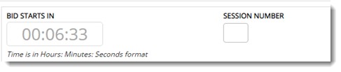 When the bid is currently active, the clock displays the time available before the bid ends with the count down. In this case the title of the Counter will be displayed as ‘Bid Time Remaining’ and the counter will display the remaining time to start the bid in Hours: Minutes: Seconds format. The second clock displays the time available before the current session of the bid ends with count down.