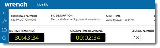 In cases where the Bid end Time has expired and challenging session has been extended, the Bid starting and ending counter is displayed as “000:00:00” indicating that the regular bid time is over.