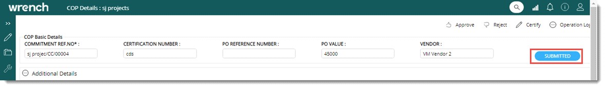 Only users with the submit COP permission in the genealogy can submit the COP. A COP can be directly submitted provided the current user has the required permissions.